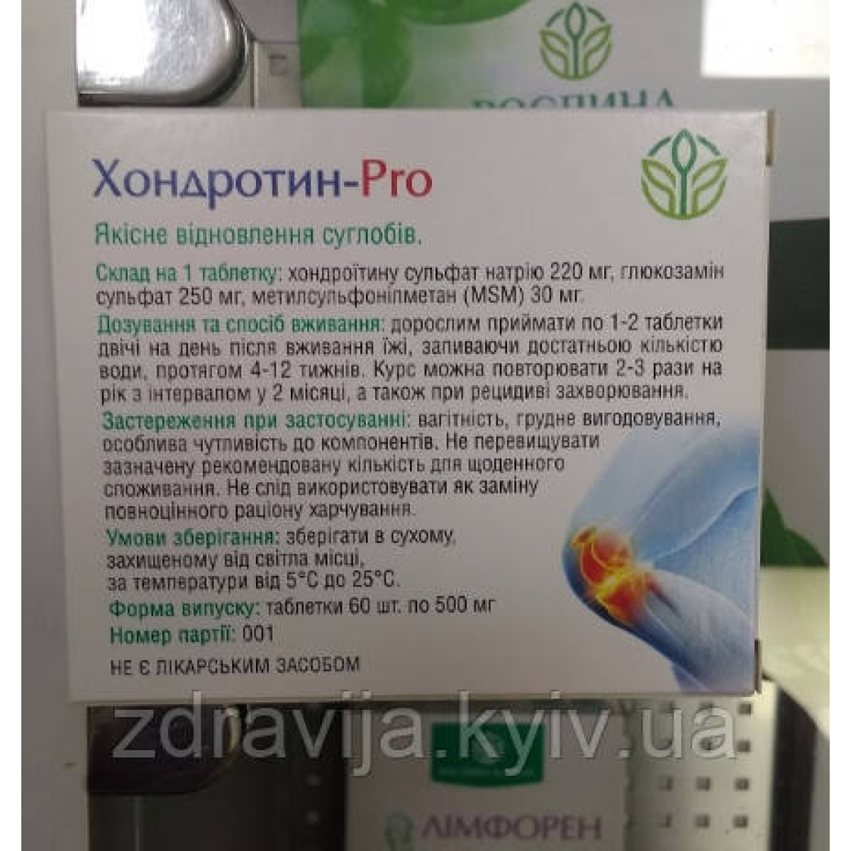 Склад: хондроїтину сульфат натрію 220 мг, глюкозамін сульфат 250 мг, метилсульфонілметан (МСМ).