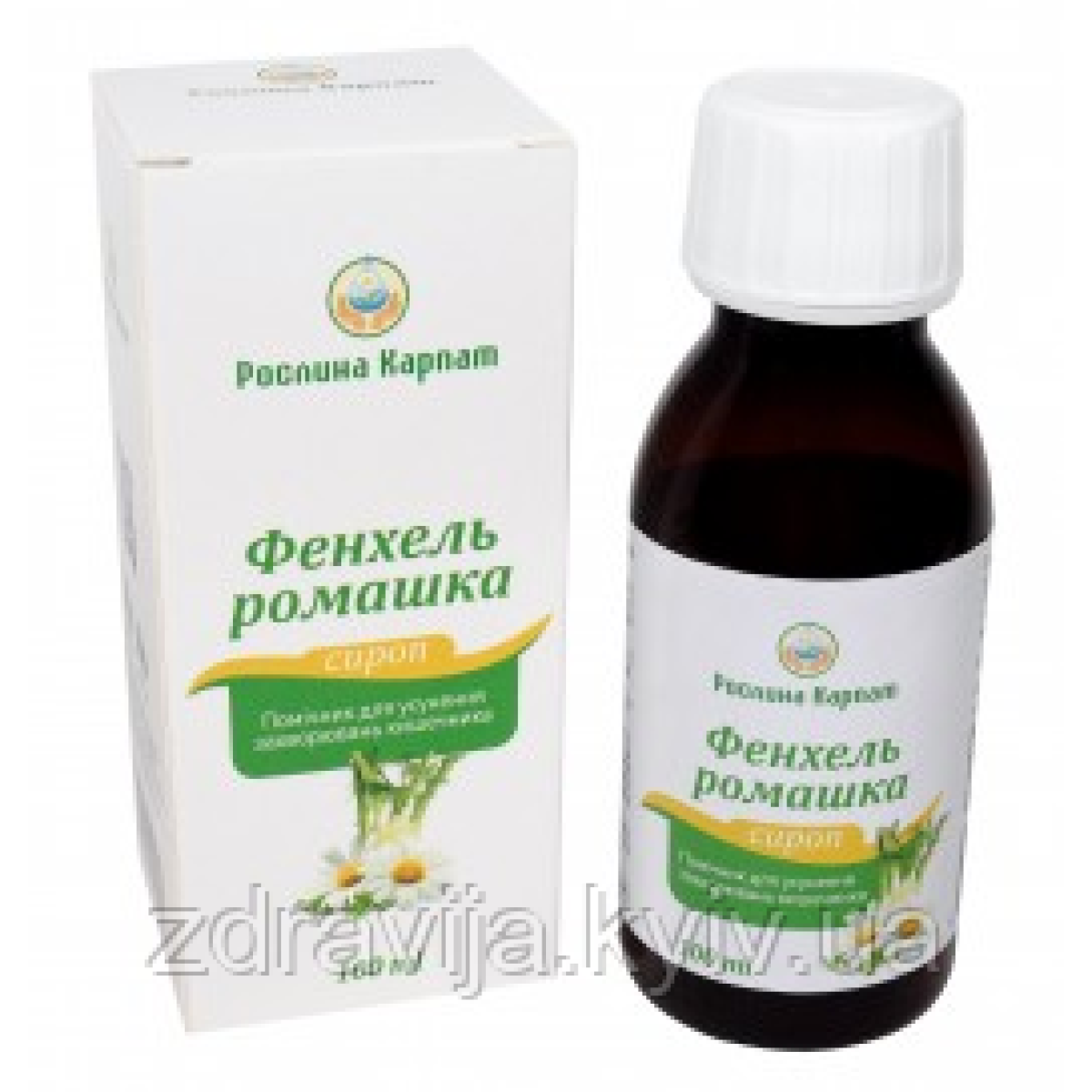 Склад: : глюкозно-фруктозний сироп, екстракт фенхелю, екстракт ромашки, екстракт подорожника, консервант собрат калію. (Е 202).