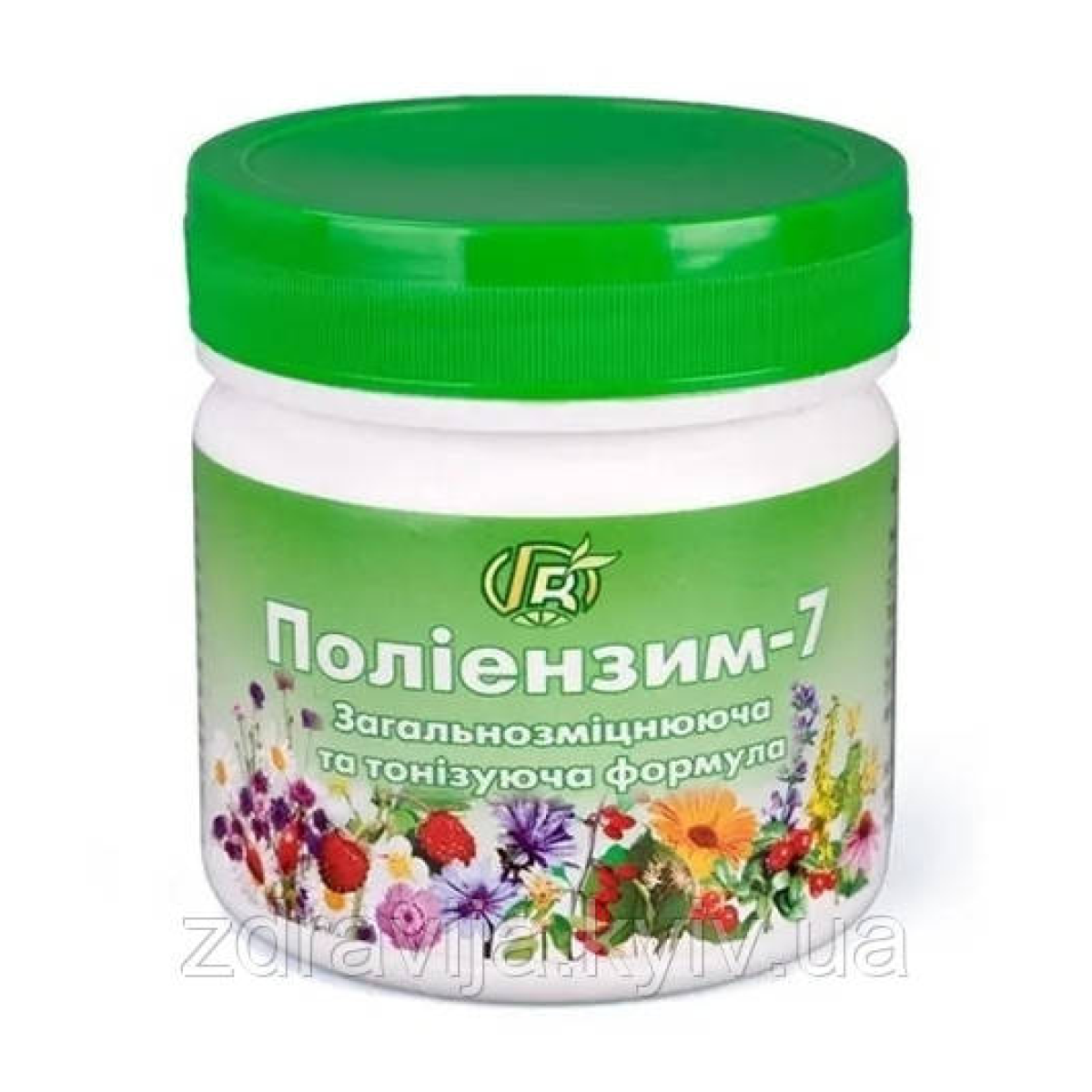 Прийом Поліензиму-7 має виражену загальнозміцнювальну дію. Він сприяє збереженню енергії, тонізує. Організм за рахунок компонентів, що входять у цей засіб, краще адаптується в умовах стресів та підвищених навантажень. Застосовується він після лікування антибактеріальними препаратами, проходження курсів хіміотерапії чи радіологічного лікування.
