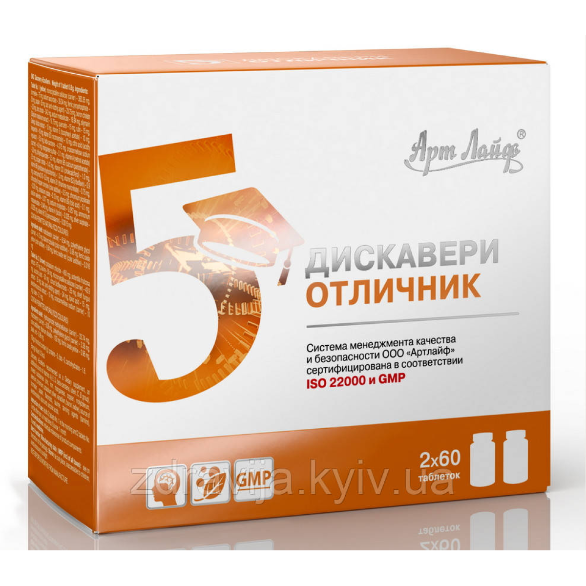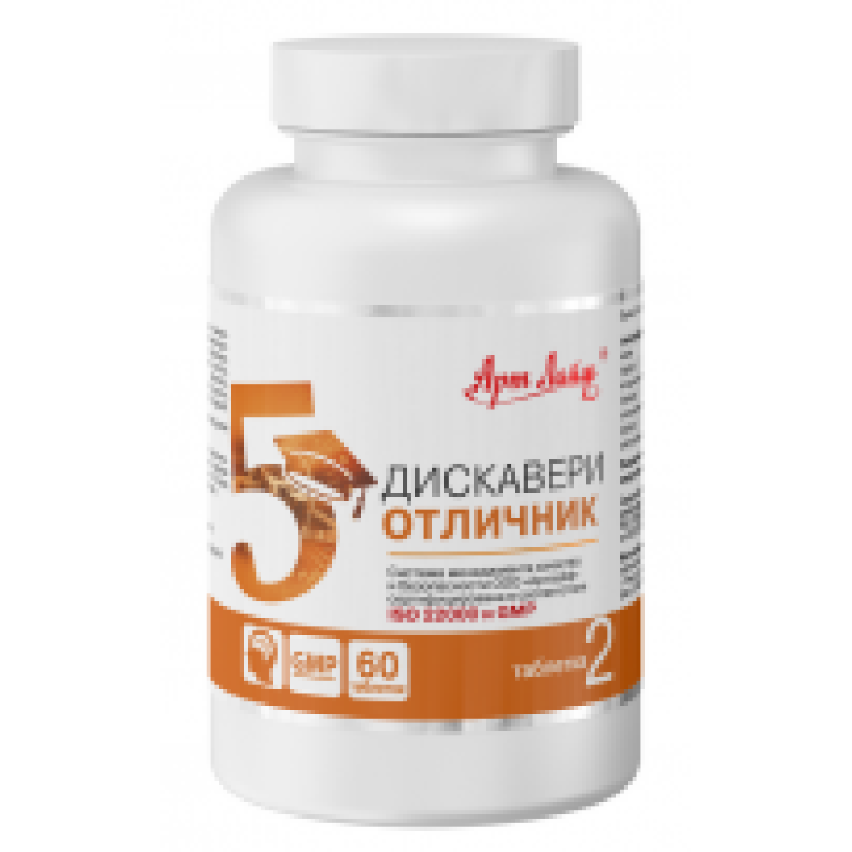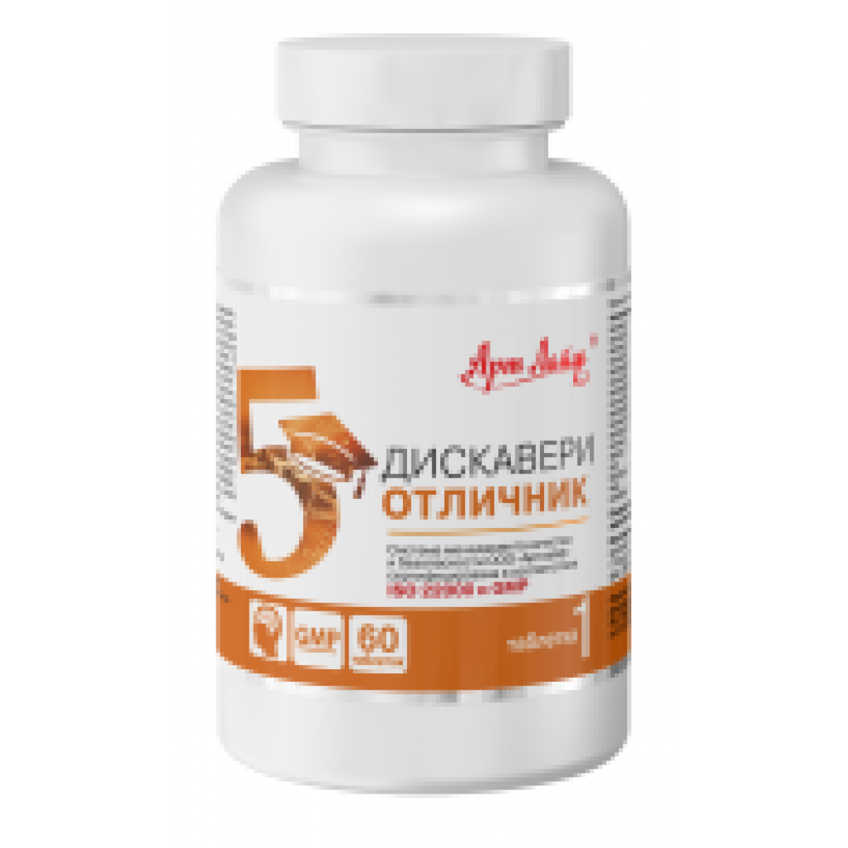 Таблетка № 1 комплексу «Діскавері Відмінник» - це сума вітамінів, мінералів і рослинних екстрактів, які беруть участь у регуляції фізіологічних процесів і забезпечують тонус організму протягом всього дня.Цей комплекс нормалізує енергообмін та використання цукру за рахунок входять до його складу вітамінів групи В, йоду і хрому.Він надає сосудоукрепляющее дію завдяки вітаміну С, рутину, биофлавоноидам і екстракту гінкго білоба, а також прискорює регенерацію епітеліальних тканин і клітин печінки завдяки вітамінам А, Е, рослинних екстрактів солянки холмової і розторопші плямистої. Натуральні ферменти, що входять до складу першої таблетки комплексу, сприяють утилізації продуктів обміну речовин, що володіють протизапальною дією, в сукупності з мікроелементами забезпечують регуляцію тканинного дихання і протидіють вільним радикалам.